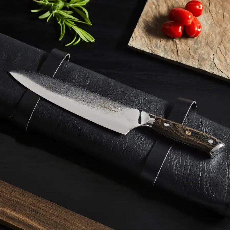 67 lag ægte Damascus-stål for præcision og et karakteristisk bølget mønster. Høj hårdhed og Wengé-håndtag sikrer langvarig skarphed og komfort ved brug.