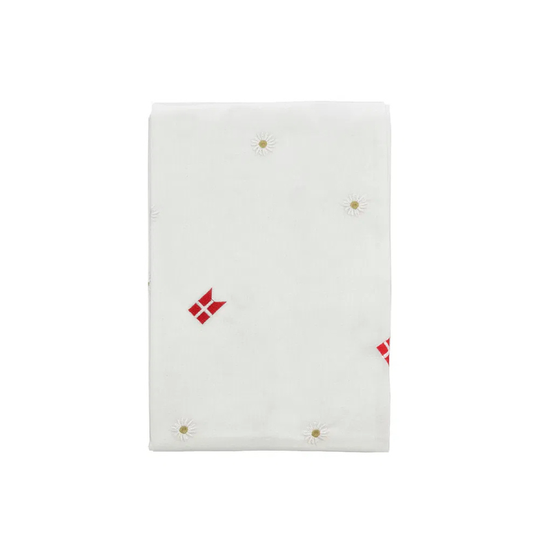 Skab en festlig stemning med vores broderede dug, Tillykke! Dugen prydes smukt af Dannebrog og delikate margueritter, også kendt som Daisies. Dette design er skabt til at bringe glæde og fejring til enhver lejlighed. Tillykke-designet er ideelt til at skabe en hyggelig atmosfære ved festlige lejligheder, uanset om det er til fødselsdage, jubilæer eller andre glædelige begivenheder.