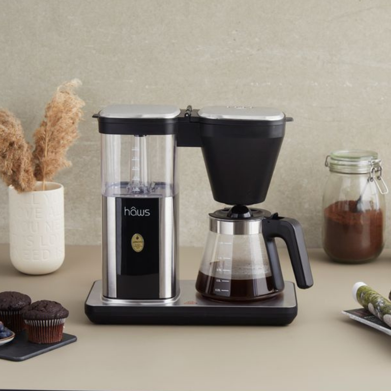 Oplev den perfekte kop kaffe hver gang med Hâws Bogø Kaffemaskine! Med en hurtig bryggetid på cirka 6 minutter og en kapacitet på 1,25 liter – svarende til ca. 10 kopper – er den ideel til både familie og gæster.